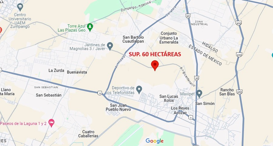 TERRENO EN VENTA EN ZUMPANGO, EDO. MÉX. SUP. 60 HECTÁREAS.