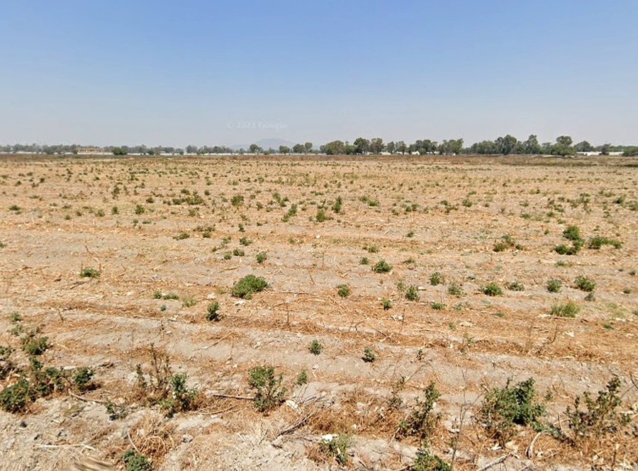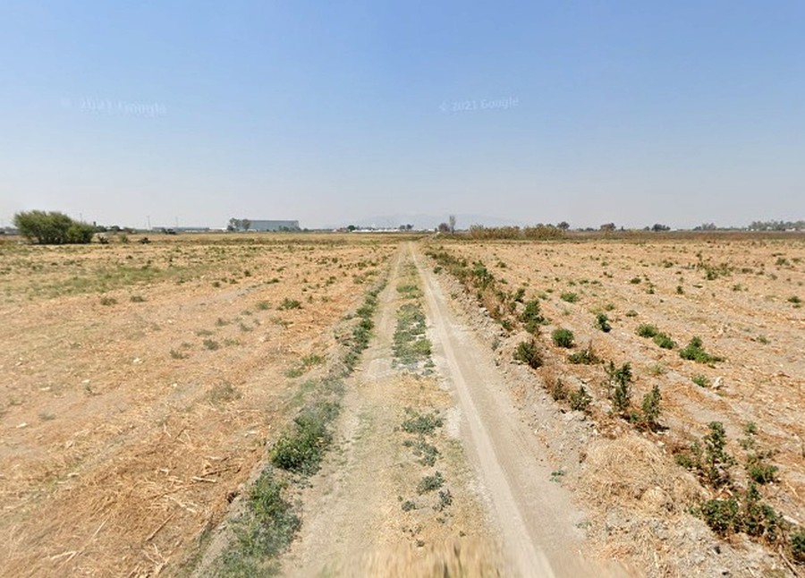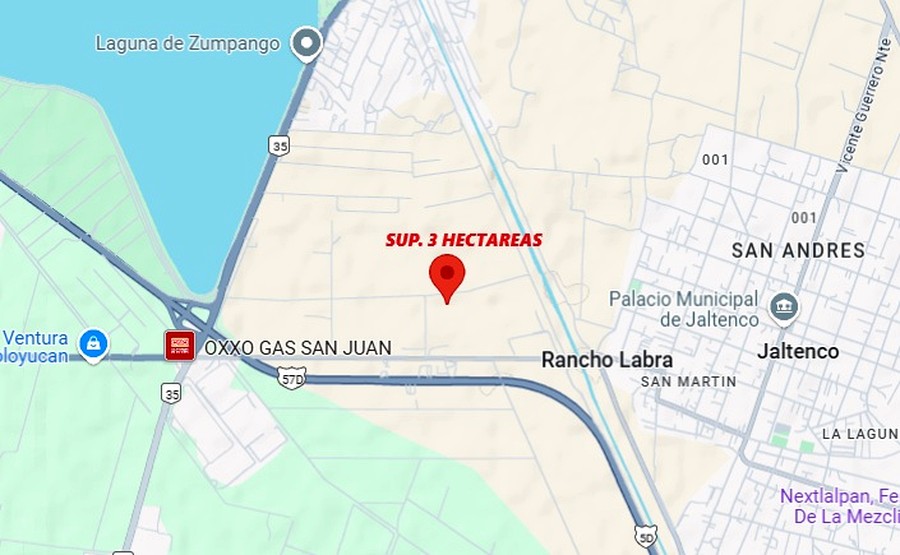 Es un terreno plano de forma irregular con medidas aproximadas.