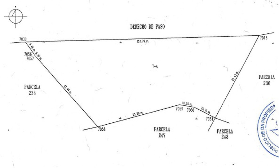 Sur: 80.56 mts. en linea quebrada con parcela 247